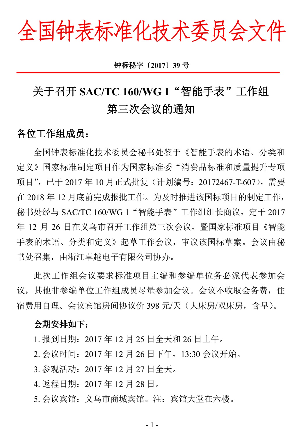 2017年第39号关于召开智能手表工作组第三次会议的通知